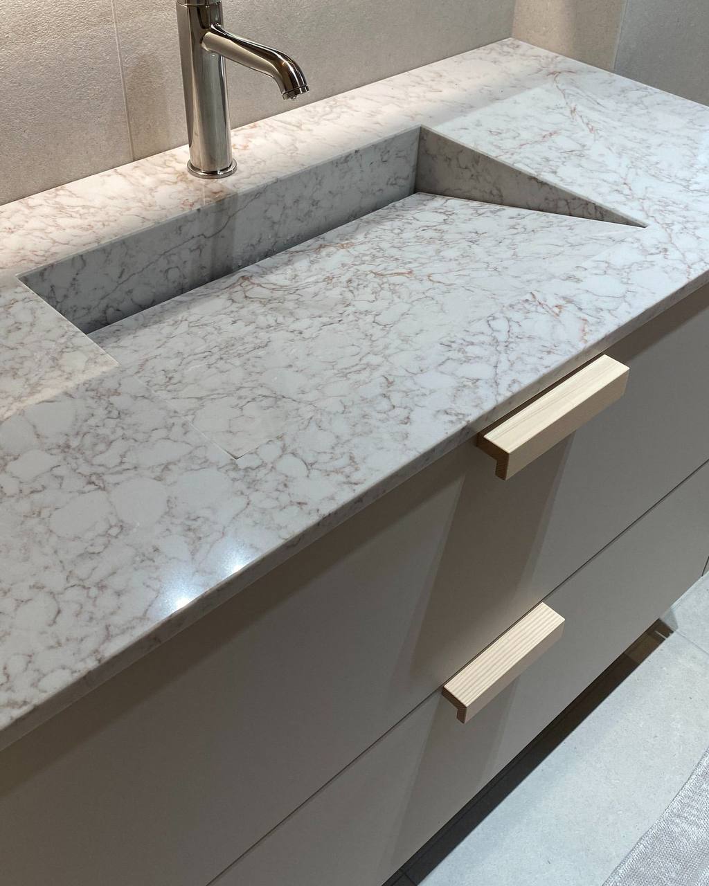 В данном дизайне раковина выполнена из кварцевого камня Silestone - Rivière Rose.