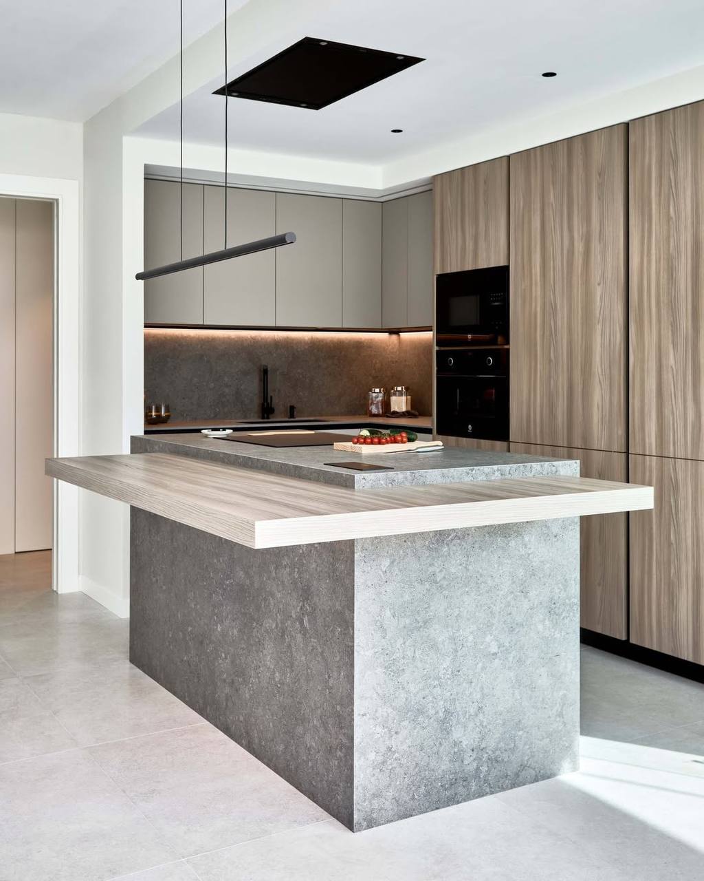 Впечатляющий проект, центральное место в котором занимает остров из материала Dekton Grafite.